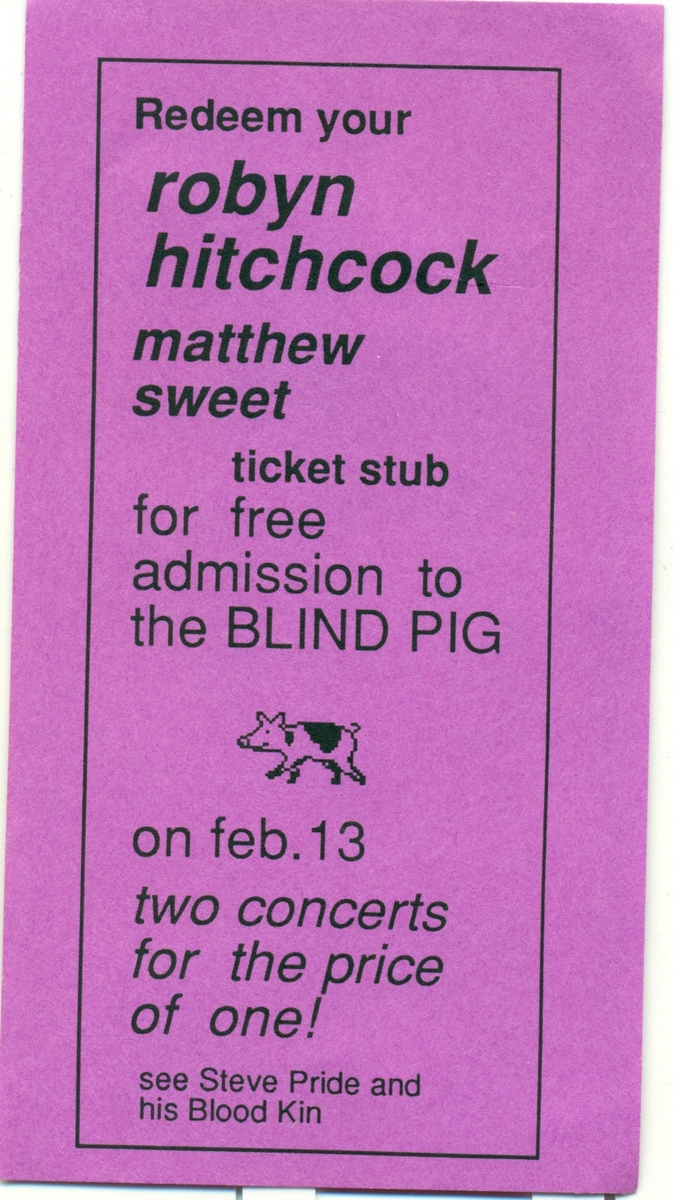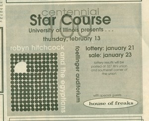 Early ads for the show listed 'House of Freaks' as the opener, but Matthew Sweet actually played (At the DC show on this tour, both HoF and Sweet played, I assume that was true here as well). -b