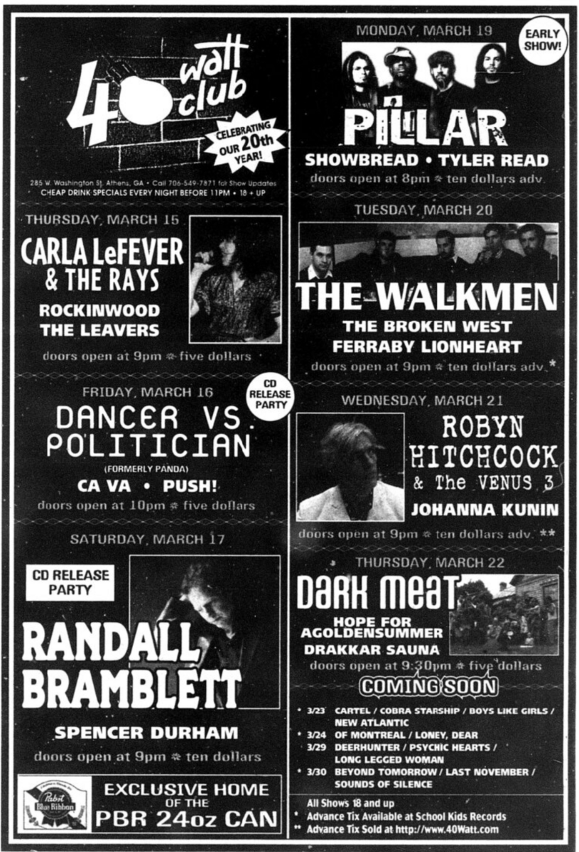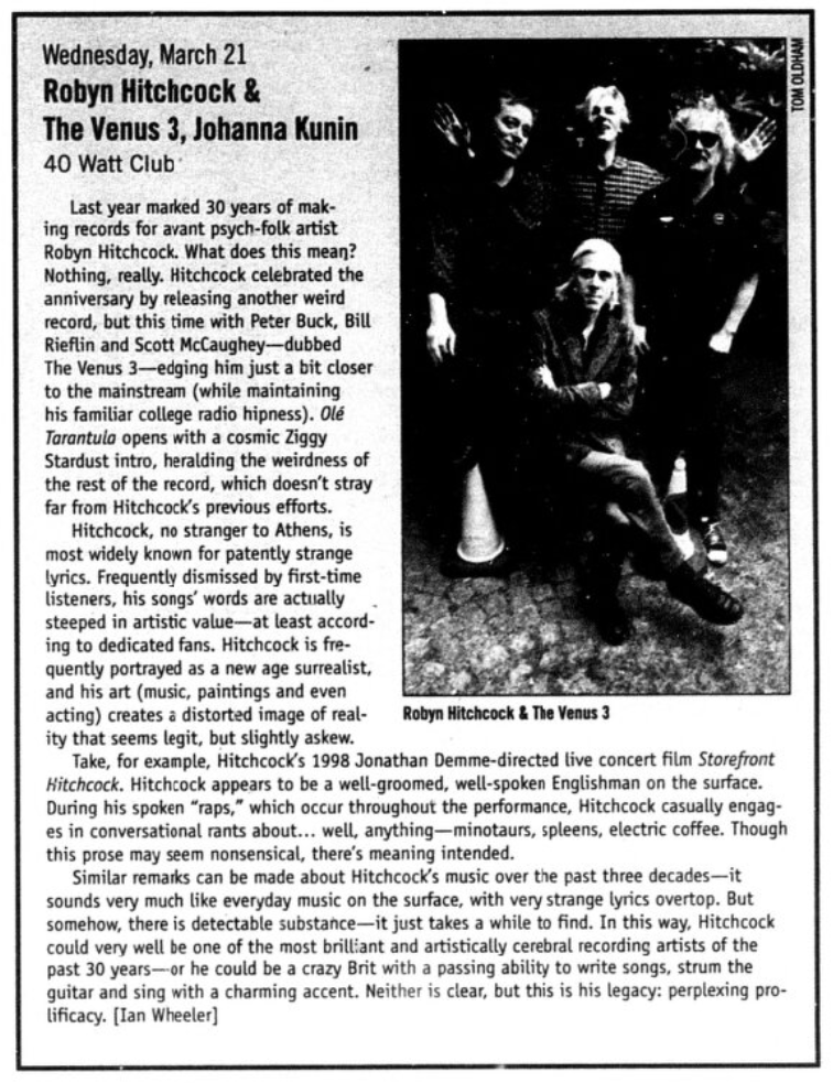 Review and photos on Facebook by Chris McKayMarch 21, 2007 (Late) - Robyn Hitchcock And The Venus 3 - 40 Watt Club, Athens, Georgia