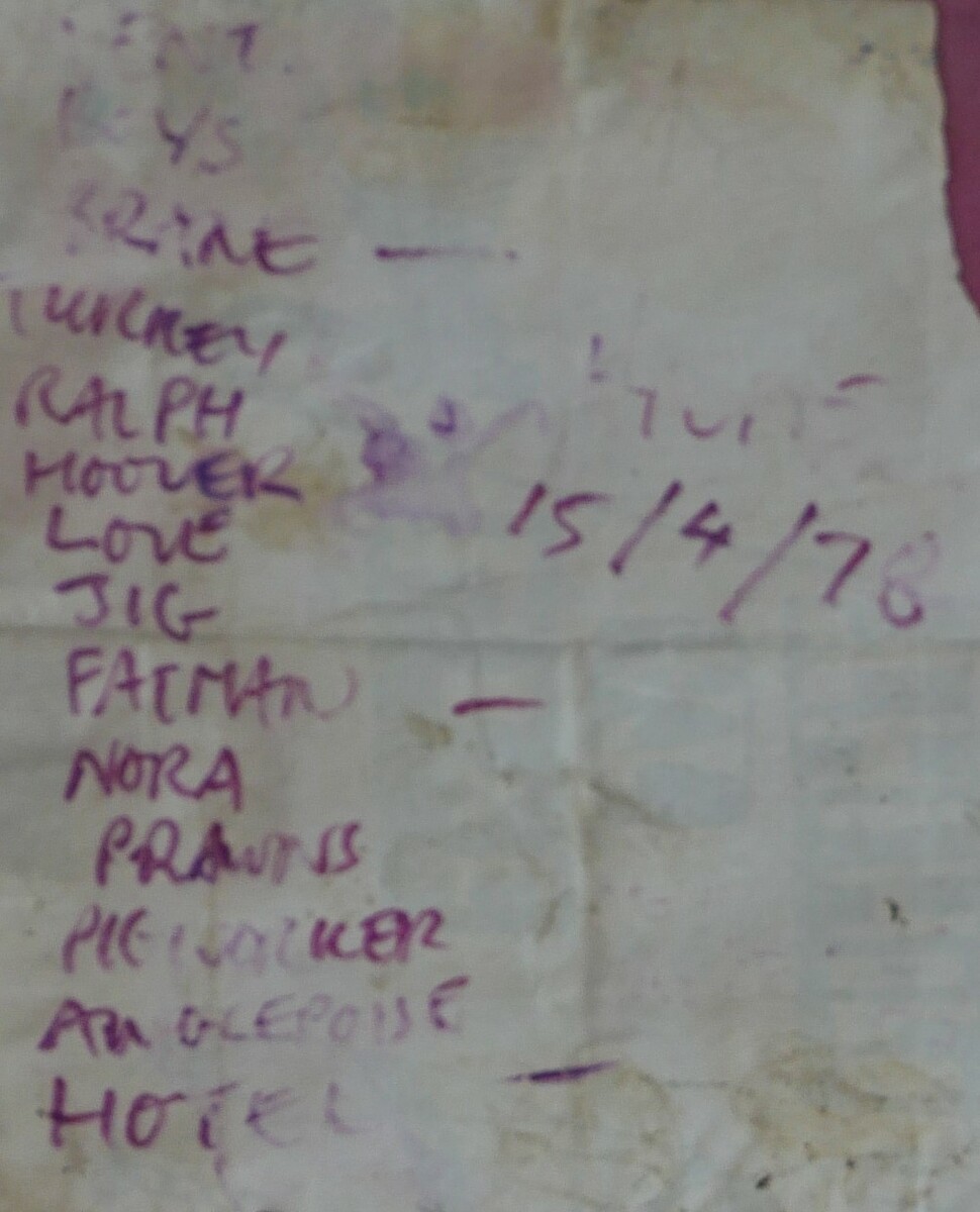 Note: April 15, 1978 was actually a Saturday, not a Friday, not sure if this means the ad is from a different year, but Kimberley lists this show date in his date list in the scrapbook and has a written setlist in his archives (passed along to us by Lee Cave-Berry and included in the images here; many thanks!).