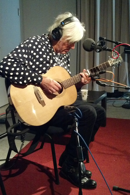 A new set begins: Irene, self-photographing with Robyn On the eve of a brand new album, a tour and a significant birthday, Robyn Hitchcock was dropping by some of his favorite radio stations to perform some solo sessions. Mr. Hitchcock is no stranger to Irene's show, having been on twice before, and said he felt it was important that WFMU not be left out. In advance of the new album, Robyn was ensconced in WFMU's Love Room to play songs from his newest disc, "Love from London," to be released in March 5th, 2013.