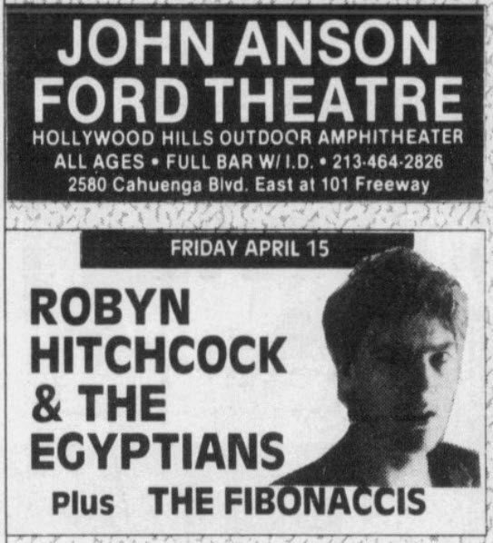 Robyn Hitchcock knitted his heavy eyebrows, peered out at the 1,000 or so people at the chilly John Anson Ford Theatre, and explained: "If you want to dance, it's better to just vibrate internally, because this isn't Dance music." But the tall, lean Englishman's outdoor concert Friday showed that his melodic, intelligent Pop and often bizarre, twisted imagery call for as much a physical response as a cerebral one.