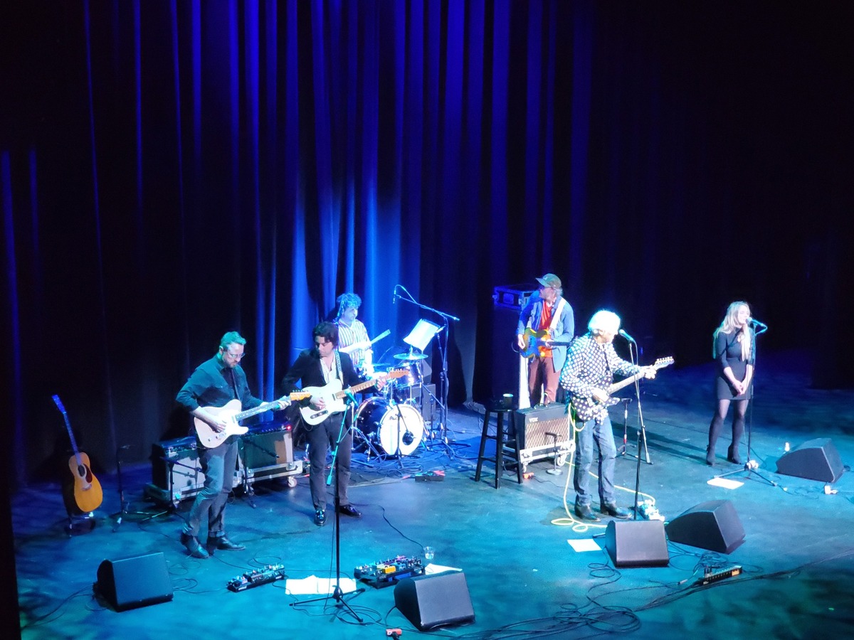 The evening began with a brief but captivating set by Swift, featuring tender songs from her recent release The Resurrection Game. The symphonic grandeur of the album’s “Nothing and Forever” was made more intimate by presenting Swift’s lilting melody with the minimal adornment of Lollar’s spacious electric guitar. “Somewhere between nothing and forever,” sang Swift in the emotional torch ballad. “That’s you and me.” The album’s title cut depicted a tempestuous relationship, with the image of “breathing in fire and calling it air.” Swift paused to explain herself to the crowd. “I’m naturally an optimist,” she said, “but I married a nihilist. I didn’t know it was a sexually transmitted disease.” Swift explained “No Happy Endings” as a song about trying to reconcile those extremes. “There are no happy endings, but baby, I’m trying,” she sang. With its keening soprano melody, “Beautiful Ruins” was played in answer to a fan’s request. Swift’s set concluded with a pair of cover songs. First was a Bob Dylan song not included on her 2020 homage to Blonde on the Tracks. Lollar stretched his guitar lines into nimble jazz-influenced figures as Swift wrung the pathos and resignation from “Don’t Think Twice, It’s All Right.” The final song was a riveting torch-blues interpretation of Prince’s bereft, heartbroken “Nothing Compares 2 U.”
