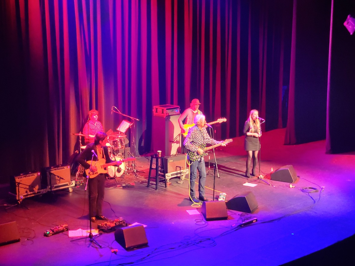 The players more than proved their worth during Hitchcock’s “Autumn Sunglasses” and the Soft Boys’ “Insanely Jealous.” Hypnotic The Confuser song “My Dead Astronaut” was happily not directly applicable to the day, which had just earlier seen the successful splashdown of Artemis II with all four NASA astronauts alive and thriving. Fetzer and Hitchcock played sinewy, intertwining guitar lines between verses. Bolden sang high harmony to Hitchcock while keeping a taut groove with Slick.