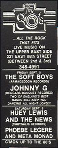 This event was apparently known as "Ladies at the 'ive" (transposing first letters of "Live at the Eighties" in the manner of "Lope at the Hive (live at the Hope and Anchor)). Two sets were reportedly played, one was audio taped.
