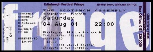 It was a shame the show was not sold out because Robyn appeared to be in fine form. He was off into a monologue before he even played his first song! Most of the show was acoustic since Robyn broke a string on his electric after a couple of songs.