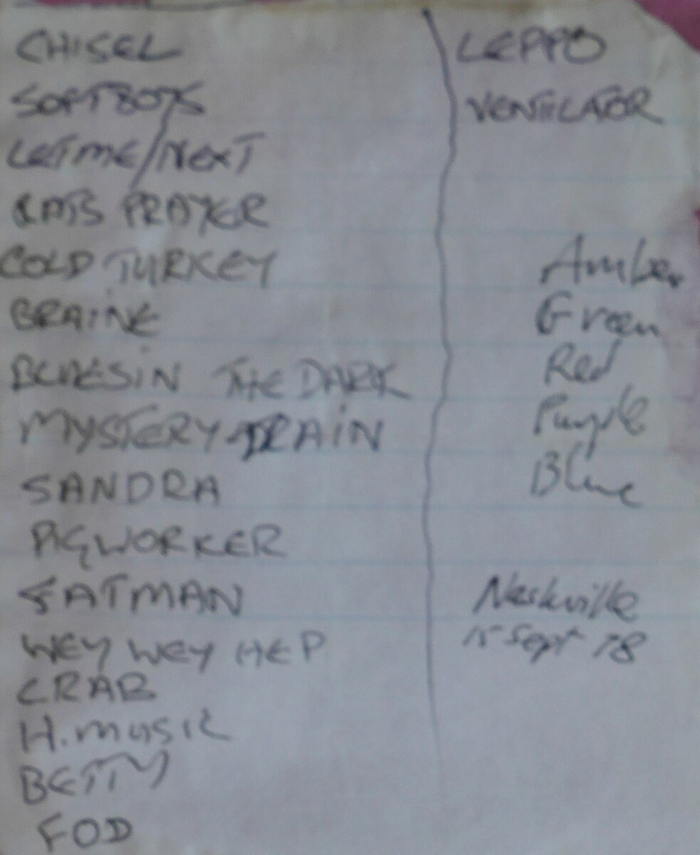 Their musing is a very forceful blanket sound; raging dual electric guitars, inscrutable pumping bass, stoic drumming with occasional strange spirited harmonica. It skims along with delirium and swagger, counterbalanced with the awkward whimsy of the lyrics. The vocal delivery and mannerisms are of an Ayers-Barrett wide-eyed singing-in-the-bath dead pan.