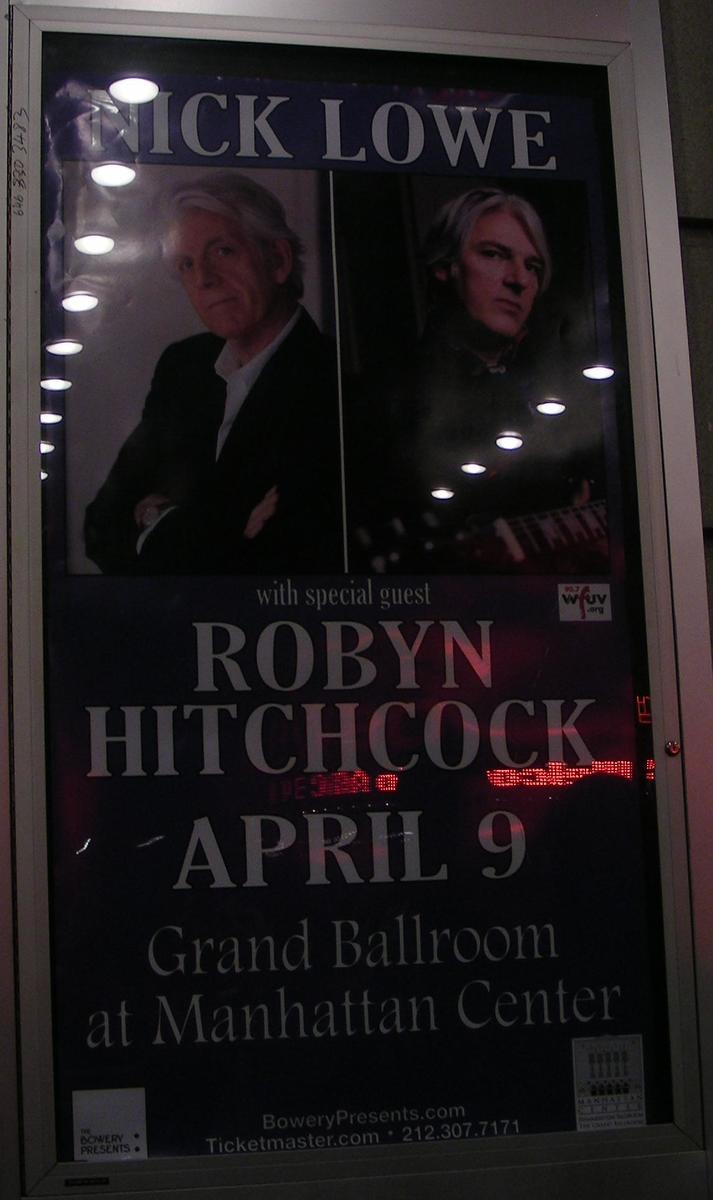 Review by New York TimesOpening the show with another solo acoustic set was Robyn Hitchcock, who is four years younger than Mr. Lowe and the same as ever: a half-joking parody of British psychedelia. His was a rarefied weirdo’s game from the start; there’s no need to update it, really.