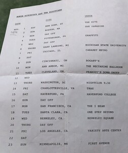Picture of November 1986 tour itinerary supplied by Morris Windsor in 2025
