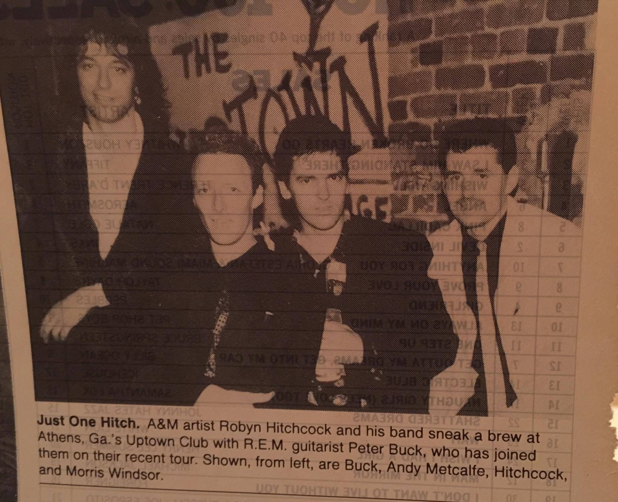 The Deep South has always been good to Hitchcock—particularly Athens. He recalls his earliest memories of performing in the Classic City in spring of 1988. “We played the old 40 Watt, back when it only had one lightbulb,” Hitchcock recalls. “I was with my band the Egyptians, supplemented by Peter Buck, who very kindly collected me from the Atlanta airport in his hearse.
