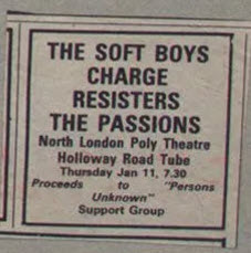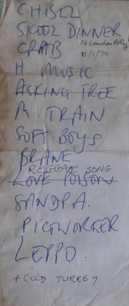 Kimberley Rew's Soft Boys scrapbookSetlist from Kimberley's archive.