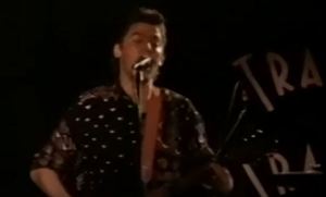 Prior to the show, A&M's radio promotions staff hosted a dinner at a restaurant up the street from Tramps. Matt and I had a quite enjoyable time, certainly partaking in the freely-flowing complimentary spirits that accompanied dinner. When the time came for the stroll over to the venue for Hitchcock's performance, we encountered Dave Kendall, the then-host of MTV's 120 Minutes, standing in front of the venue with a camera crew attempting to tape a piece for the show.