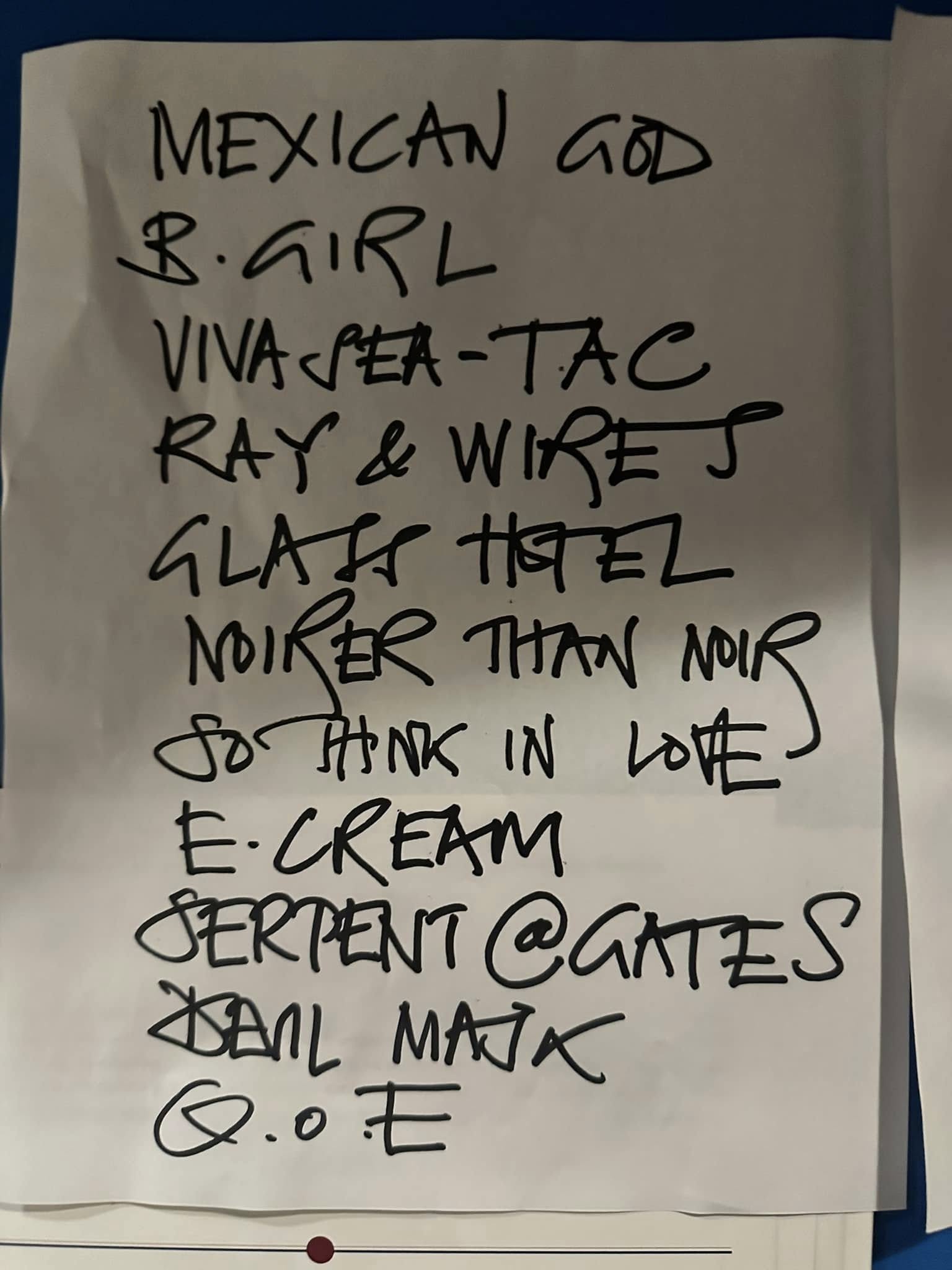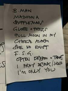 Setlist and photos provided by Brian N. Not everything on the written lists was played.