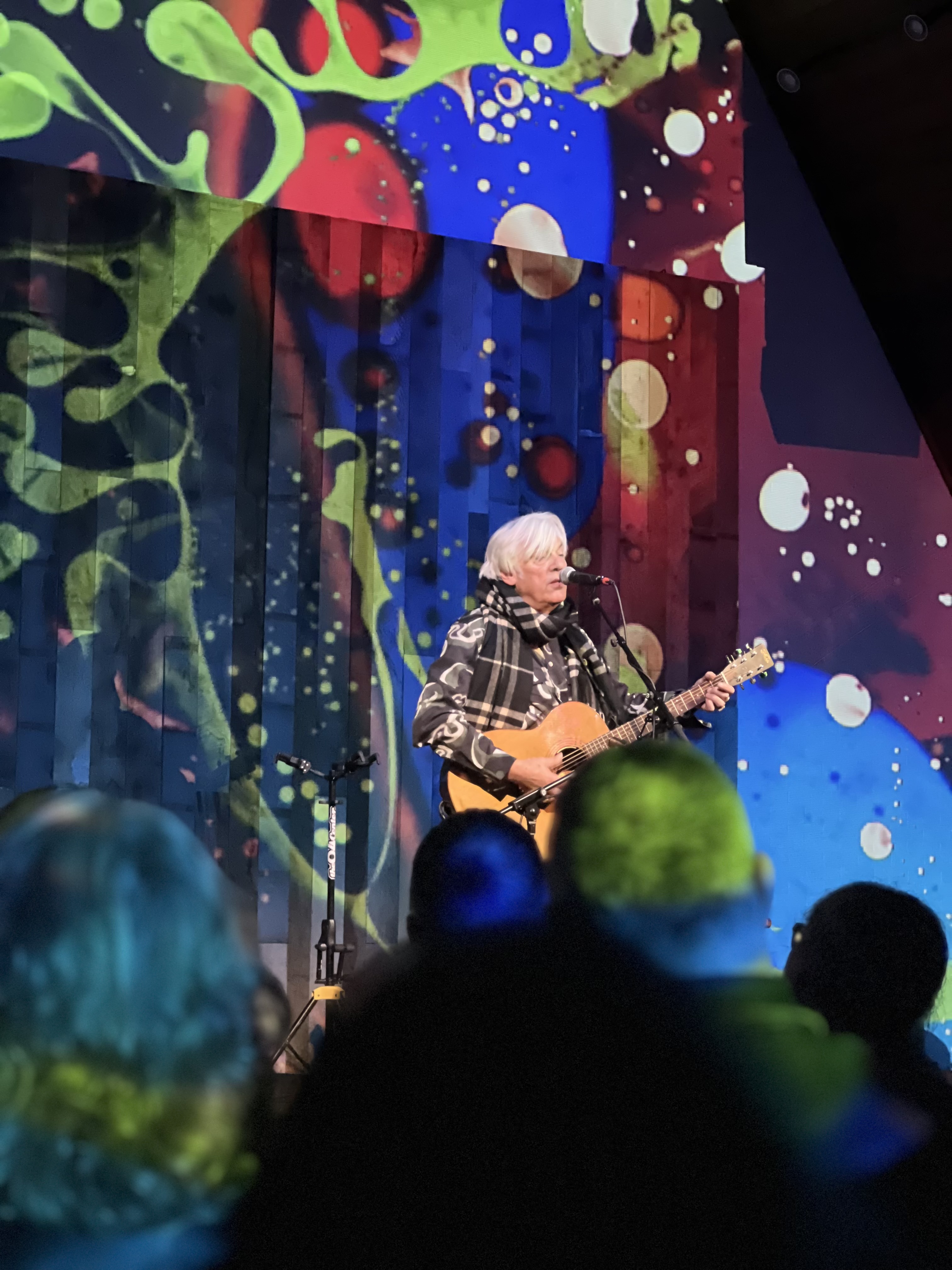 After over 39 years I was in the audience again for an evening with Robyn Hitchcock, and as soon as he started speaking I recognized him immediately: hey, it was him, with that voice and that unique brain. He was very funny, interspersing the songs with quips like “Sure, the world’s going to shit, but artisanal coffee’s getting really good,” “It’s a really interesting species, if you find yourself incarnated here,” “Okay, let’s bulldoze the mood with this one,” and, just before he left for intermission, “I’m going to lie in my lead-lined coffin for 17 minutes.” It’s all done with a knowing wink, as if he’s saying yeah, we’re all in on the cosmic joke here before this crazy planet blows up.