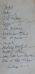 Setlist provided by Kimberley Rew and used with permission; newspaper clipping from Kimberley's Soft Boys Scrapbook.