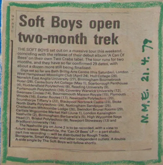 The attached clipping in the gallery at right, from New Music Express (from Kimberley's Soft Boys Scrapbook) indicates this gig was to be recorded with the intention of future release.