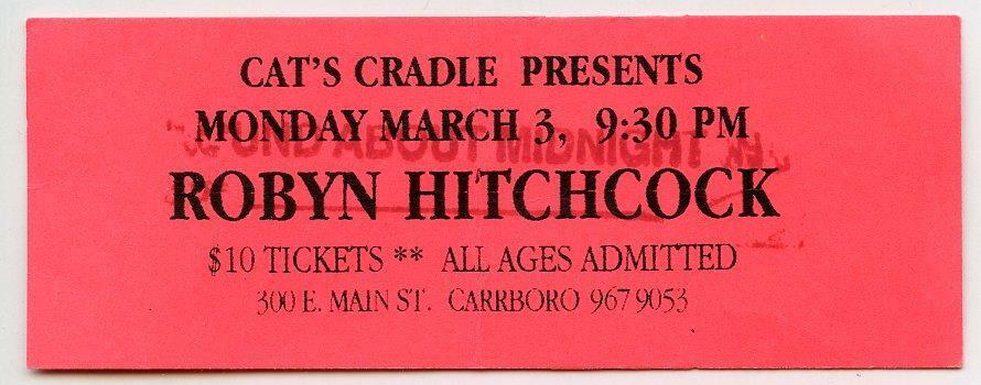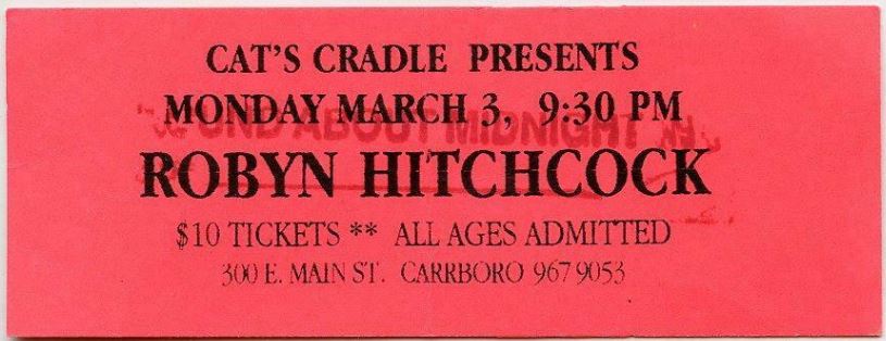 Well, as everyone pretty much knows how, yesterday was robyn's birthday and he also happened to be playing at the cat's cradle in carrboro nc on the same night. it was the first time that i had seen robyn and it was a very very great show. a little mix of old and new and very enjoyable. robyn came out for the first set with a white shirt and a black vest.the show was good stuff indeed. cones were available and did sell out.