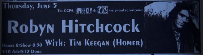 While signing, Robyn answered various questions from all of us who hung out after the gig. The new live album is not coming out till next year (Jan or Feb). My brash pal Butch and some others commented on the fact that the song "Dark Princess" actually sounds like "Duck Princess" and wondered if it had anything to do with the upside-down duck on the Moss Elixir album and T-shirt. Robyn replied that he and Tim have been making a conscious effort to enunciate their words, but at times its just not enough. He said he could never right a song called "Duck Princess": "Its a matter of taste, mate.", was the actual quote i think.
